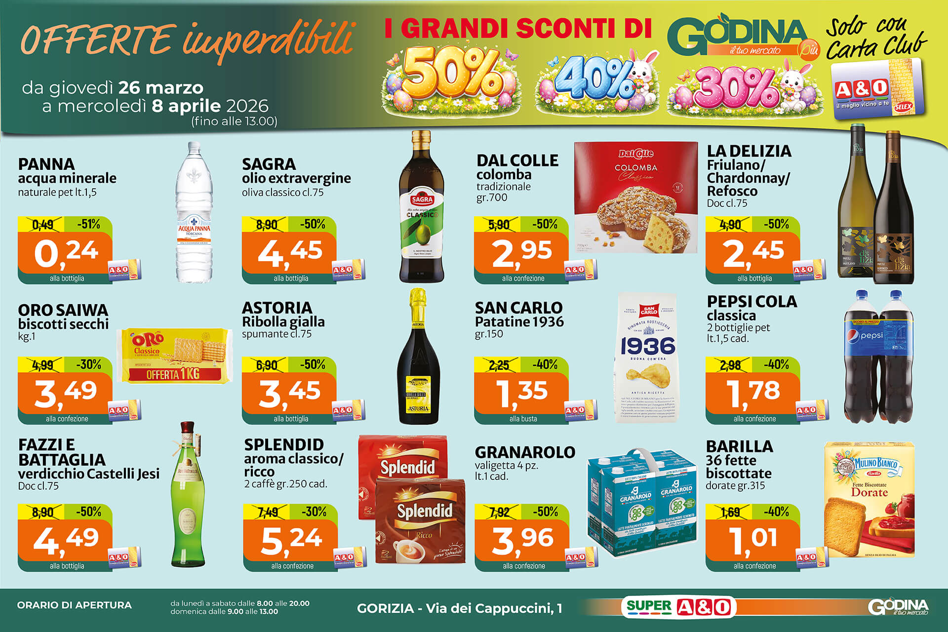 Il servizio di consegna di sole acque o bibite (max 4 casse totali) avrà sempre e comunque un costo di € 5.00. Non sono erogabili spese di importo inferiore a € 25.00. La consegna è disponibile all’interno del Comune di Gorizia e zone limitrofe.