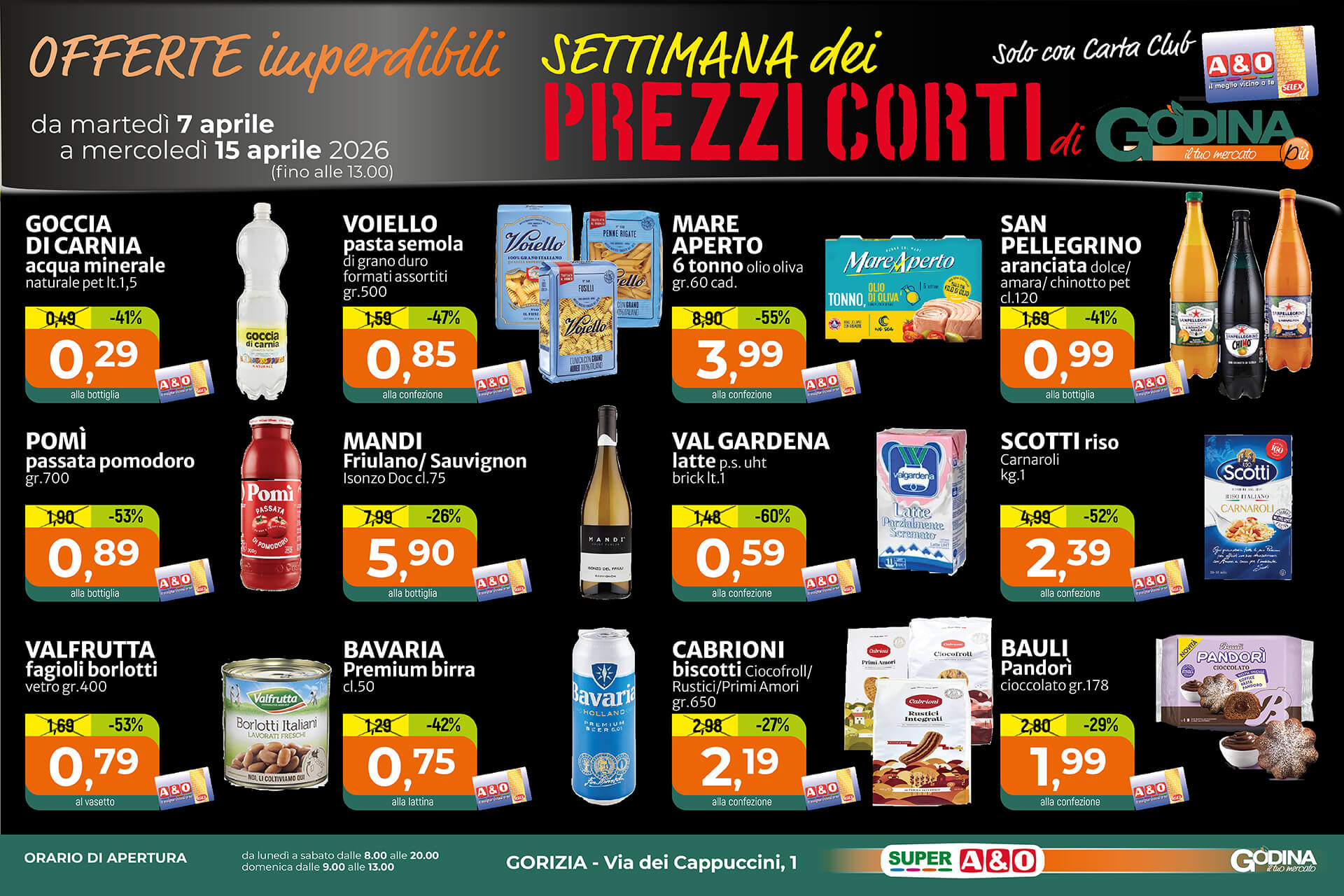 Il servizio di consegna di sole acque o bibite (max 4 casse totali) avrà sempre e comunque un costo di € 5.00. Non sono erogabili spese di importo inferiore a € 25.00. La consegna è disponibile all’interno del Comune di Gorizia e zone limitrofe.